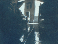 Sunlight is one of the subjects flowing through and holding together these interiorscapes. These prints exhibit an idea, which combines body and architecture, symmetry and light. This is a self-portrait; my head and eyes, my bedroom and its two windows. The room is anthropomorphized and my skull is architecturalized. Put another way; three containers, two receiving light, one living and the other inanimate are then mediated by a third; a container and device to catch light, the pinhole camera.